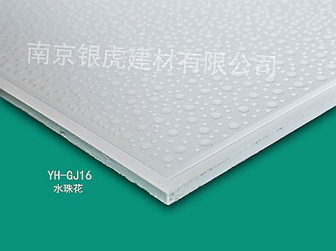 此花型名稱為“水珠花”常規(guī)尺寸603*603*14mm(公制)銀虎”牌天花板擁有獨(dú)特性、高密性的原材料配方及環(huán)保節(jié)能技術(shù),使銀虎天花板引領(lǐng)吊頂材料的新潮流。“銀虎”牌高晶(硅鈣)復(fù)合天花板徹底解決了傳統(tǒng)天花吊頂材料變形、變黃、發(fā)霉、易污臟、粗糙、檔次低等通病與缺點(diǎn),產(chǎn)品不僅具有防火、防水、防霉、高強(qiáng)、輕質(zhì)、吸聲除噪、耐候抗老化、風(fēng)化等優(yōu)良的質(zhì)量性能,而且裝飾效果美觀精致、靚麗高雅。